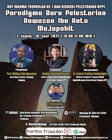 Acara ini merupakan Kombinasi antara Hut Manma Trowulan ke 7 dengan Diskus Pelestarian BPPI yang diselengarakan secara online dan juga offline, perserta yang mengikuti acara ini secara online menggunakan aplikasi zoom sedangkan yang mengikuti acara secara ...