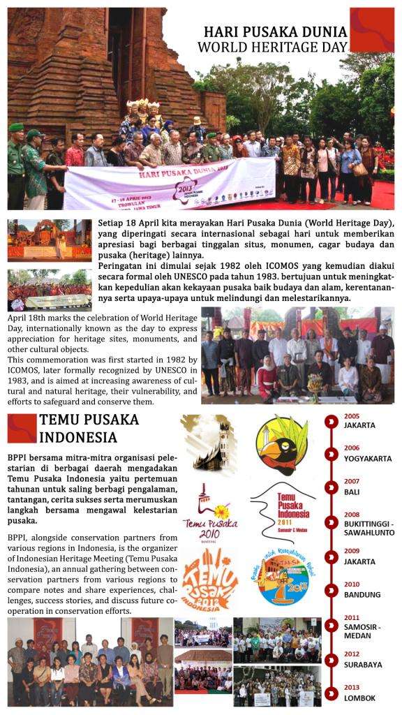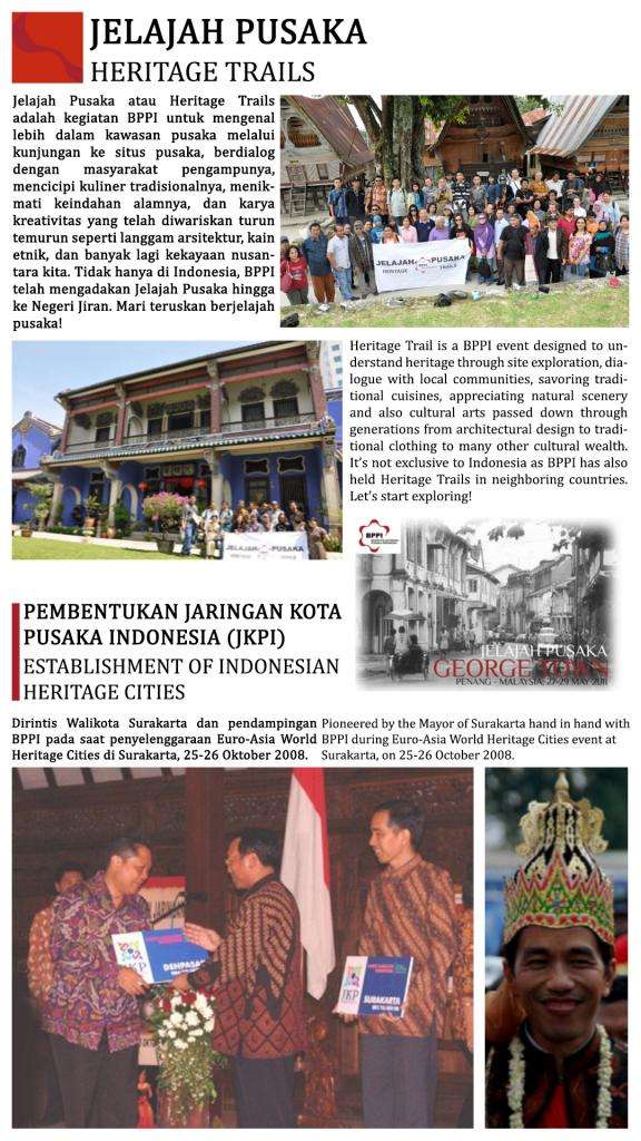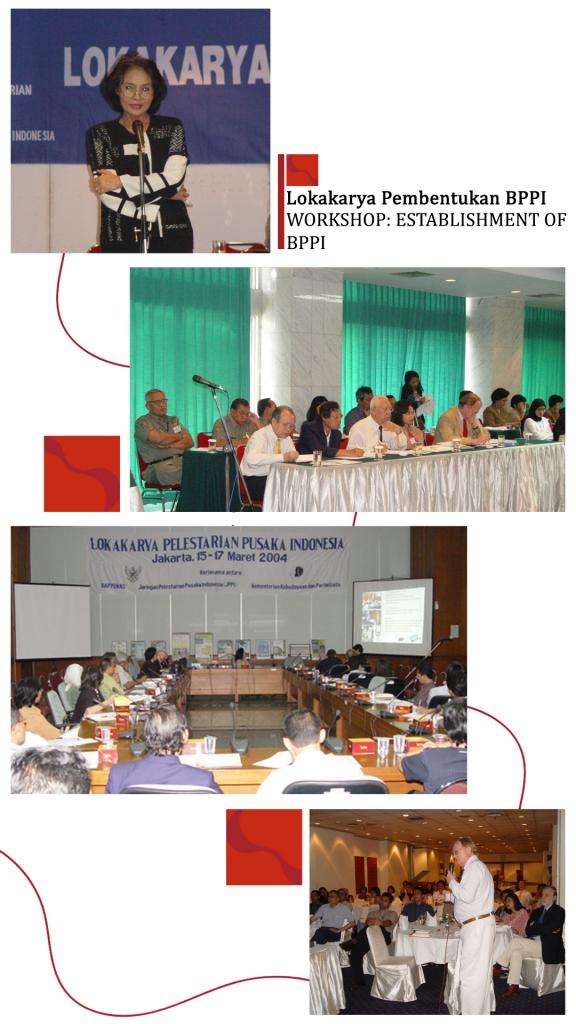 1. Pembentukan Badan Pelestarian Pusaka Indonesia (BPPI) pada 17 Agustus 2004 di Gedung Sapta Pesona, Kementerian Kebudayaan dan Pariwisata.