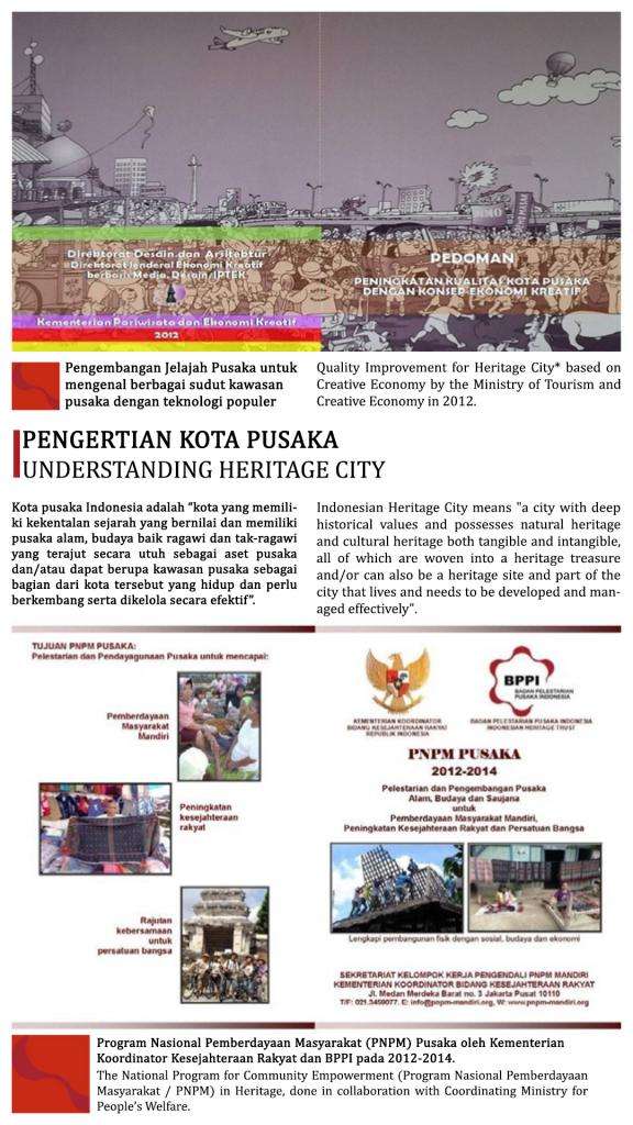 - Peningkatan kualitas Kota Pusaka berbasis Ekonomi Kreatif oleh Kementerian Pariwisata dan Ekonomi Kreatif pada 2012.