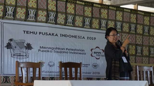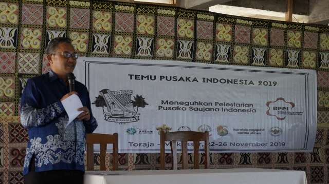 Galeri - Pembukaan Temu Pusaka Indonesia 2019. Sabtu, 23 November 2019 di Museum Ne'Gandeng, Toraja Utara. Dimulai dengan Menyanyikan Lagu Indonesia raya 3 Stanza dilanjutkan Pidato dan Sambutan diawali oleh Ketua Panitia TPI 2019 - Marthina Leony Putri, Ketua Dewan Pimpinan BPPI - Ibu Catrini Pratihari Kubontubuh, Tuan rumah Provinsi Sulawesi Selatan yaitu Bapak Bruno yang mewakili Gubernur Sulawesi Selatan, Tuan rumah Toraja Utara yang diwakili oleh Ibu Wasekda Toraja Utara. Kemudian dilanjutkan dengan Pidato Kunci oleh Menteri Lingkungan Hidup dan Kehutanan RI yang dibacakan oleh Thomas Nifinluri - Kepala Balai Konservasi Sumber Daya Alam Sulawesi Selatan, Andi Muhammad Said, kepala BPCB Jatim dan Dr. Laretna Adishakti atau Ibu Sita untuk mewakili BPPI Pembukaan Temu Pusaka Indonesia ini dihadiri oleh lebih dari 150 peserta dari berbagai latar belakang minat pelestarian termasuk siswa-siswi sekolah setempat