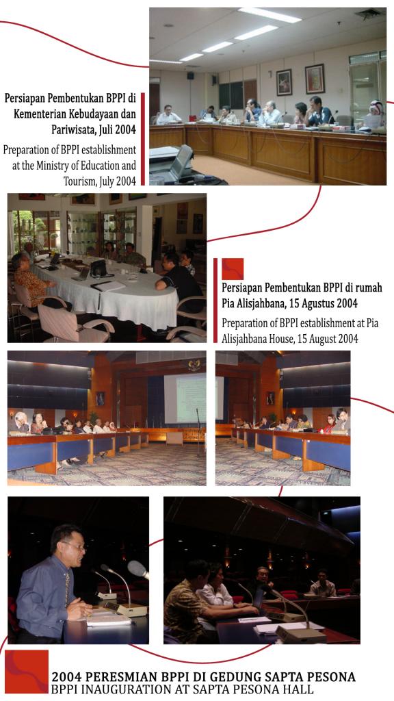 - Pembentukan Badan Pelestarian Pusaka Indonesia (BPPI) pada 17 Agustus 2004 di Gedung Sapta Pesona, Kementerian Kebudayaan dan Pariwisata.